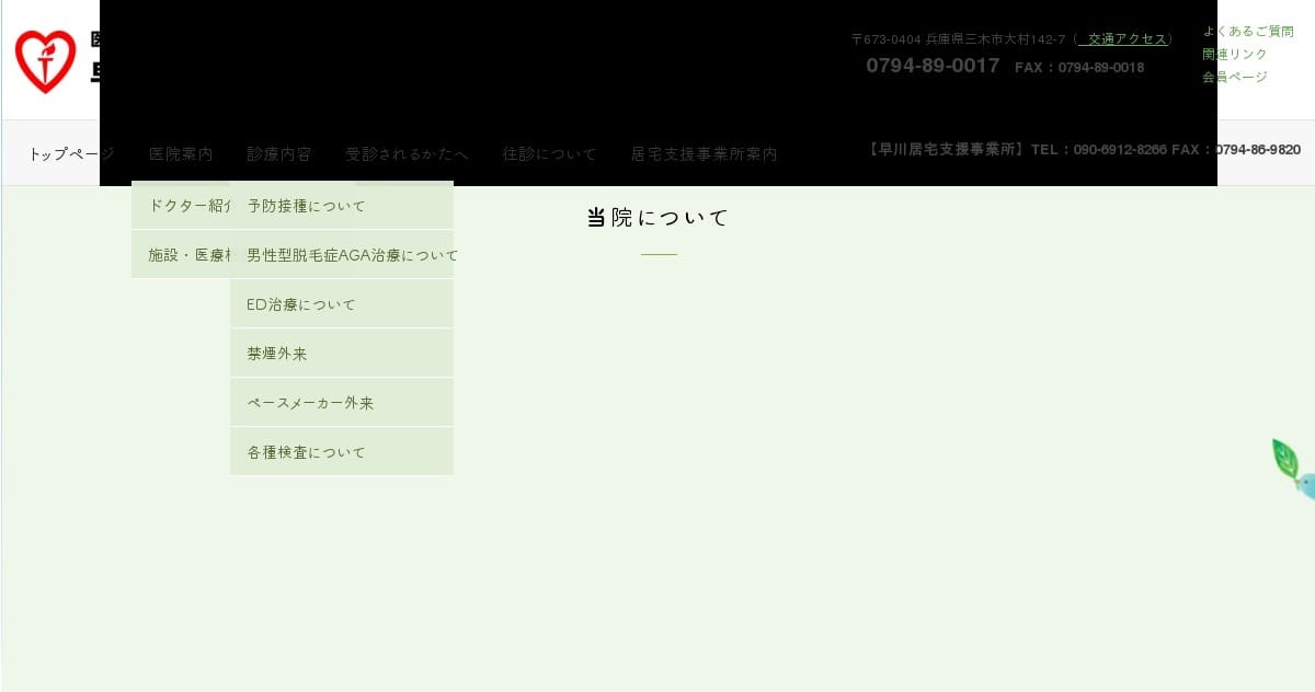早川内科循環器科医院大村駅から徒歩10分月〜金 午前 9:00~12:00 / 午後 16:00~19:00、木・土 午後 14:00~17:00(発熱外来は終了30分前まで)三木市大村の地域密着クリニック。循環器専門医が男性型脱毛症(AGA)診療を行い、往診や在宅医療と連携して継続フォロー。電子カルテやマイナンバーカードによる資格確認を導入し、安心して通える体制です。料金(税込) -詳細を見る公式サイトを見る